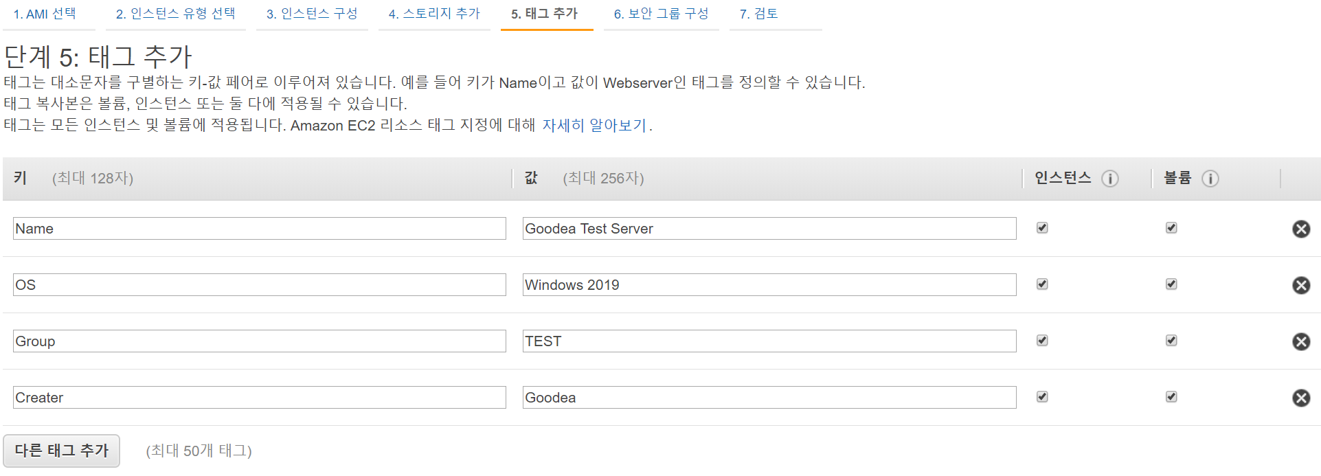 여서 서버를 관리할 경우 각 인스턴스 및 볼륨에 태그를 지정하여 그룹화 하고 관리할 수 있다.