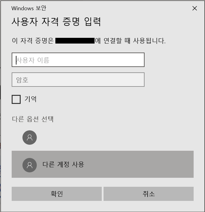 다른 계정 사용을 눌러 사용자 이름과 암호에 키페어를 통해 해독한 아이디와 비밀번호를 넣어준다. 확인을 눌러 서버에 접속!